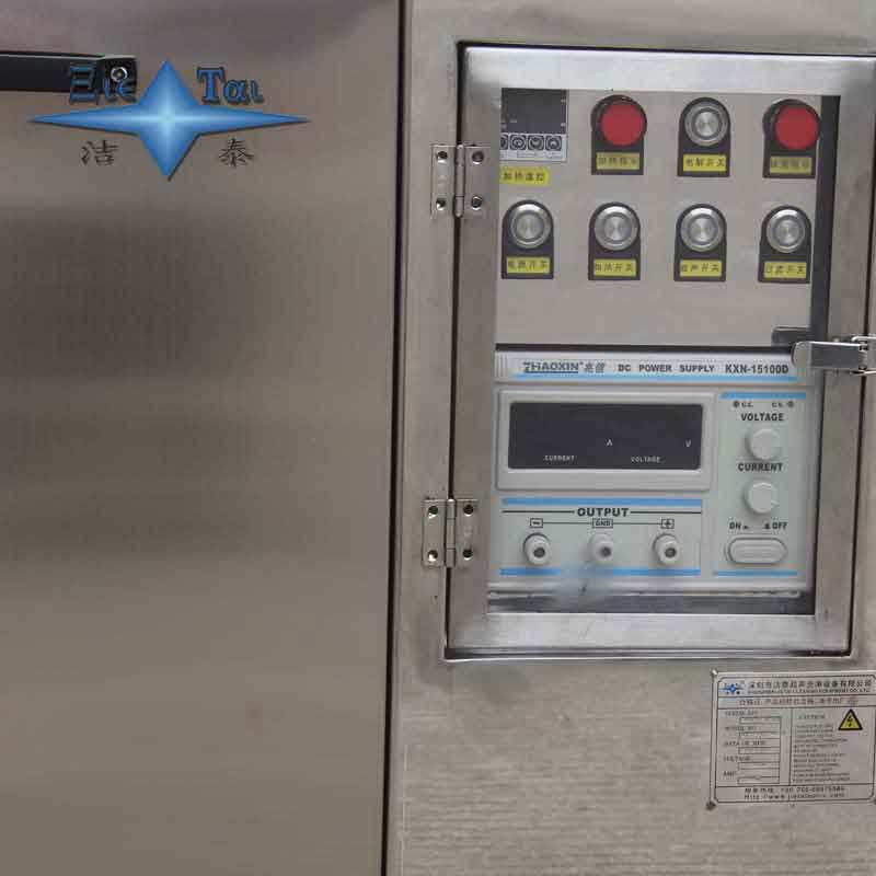 潔泰單槽模具電解超聲波清洗機,電解超聲波系統是由超聲波發生系統,電解電路系統,循環過濾系統,專用的金型清洗液和水性防銹劑組成。產品適用范圍:1、模具種類:注塑模具、儀表精密模具、連接器模具、精密密封件模具、沖壓模具、成型模具等。2、模具瓦斯氣殘留層,高溫形成的硫化物,防火塑膠殘留物,色粉殘留物,模具表面氧化物,以及各種模具的銹漬,油污等。
