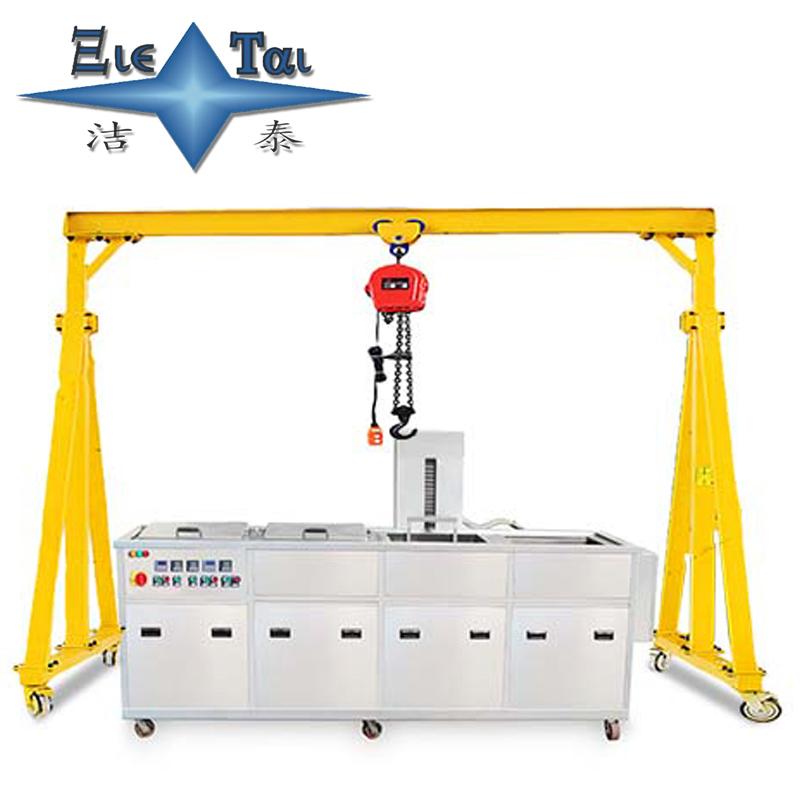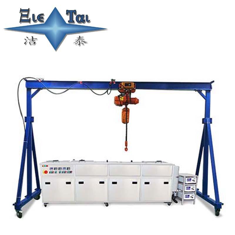 潔泰行吊式超聲波清洗機也叫電動葫蘆多槽式超聲波清洗機,一般都是按照客戶工件需求來進行設(shè)計制造。該產(chǎn)品可以選擇超聲波清洗,超聲波漂洗,熱浸泡,壓縮空氣攪拌浸泡,烘干,化學(xué)拋光,上油等工藝或工序組合,由于采用多道清洗方式,清洗液能夠多級精密過濾,可以有效保證產(chǎn)品的清潔度,按客戶要求設(shè)計洗凈流程。