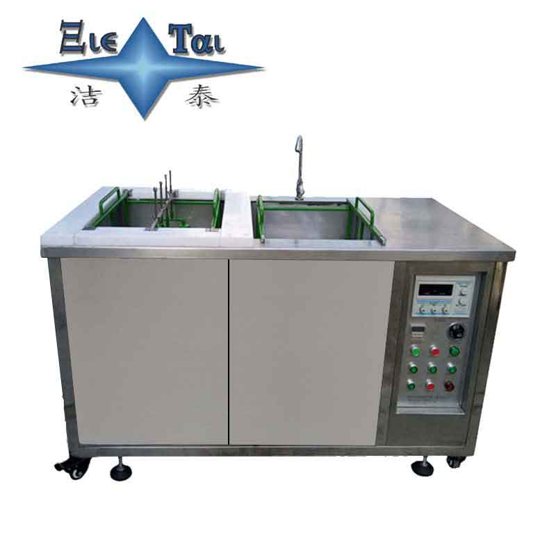 潔泰雙槽模具電解超聲波清洗機,電解超聲波系統是由超聲波發生系統,電解電路系統,循環過濾系統,專用模具電解清洗劑和水性防銹劑組成。藍鯨雙槽模具電解超聲波清洗機,第一槽為清洗槽、第二槽為漂洗槽。產品適用范圍:1、模具種類:注塑模具、儀表精密模具、連接器模具、精密密封件模具、沖壓模具、成型模具等。2、模具瓦斯氣殘留層,高溫形成的硫化物,防火塑膠殘留物,色粉殘留物,模具表面氧化物,以及各種模具的銹漬,油污等。