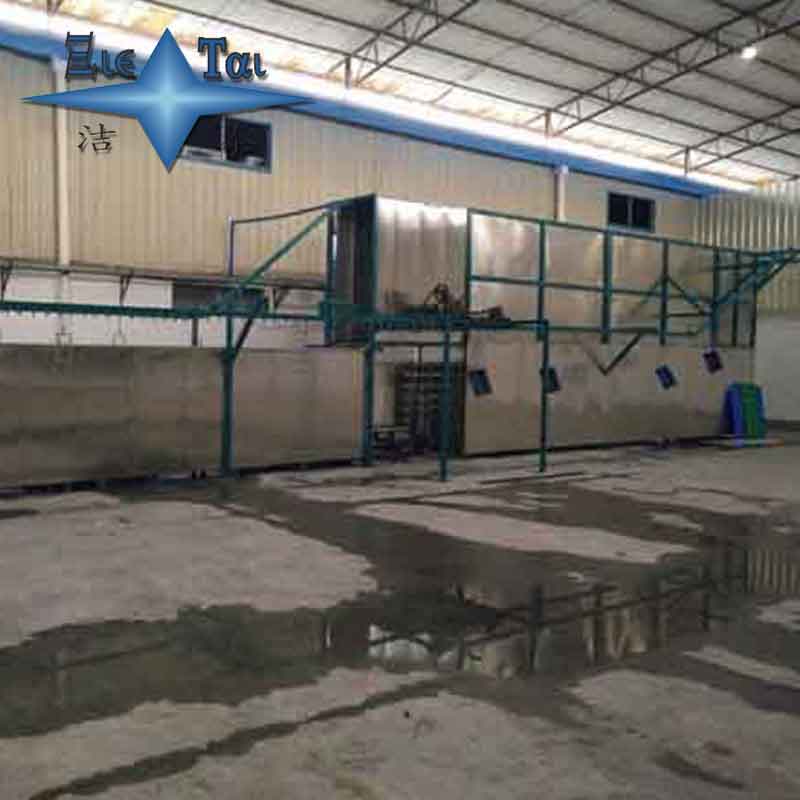 潔泰懸掛式超聲波清洗機,一般按照客戶工件清洗要求設計制造,可以由超聲波清洗,噴淋漂洗,烘干,過濾等等工藝或工序組合,由于采用懸掛鏈輸送方式,將清洗工件放置于掛具上進入超聲波槽中除油污清洗,再自動進入噴淋柜中漂洗,之后依次進入烘干柜中進行烘干,并配以多級精密過濾系統,可以有效保障產品的清潔度,并可根據客戶實際需要,配置自動/半自動傳動機構,靈活滿足客戶的各種清洗要求。